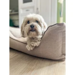 Das bequeme Hundesofa von Aumüller hat einen formstabilen, schweren Kissenrand und eine hochwertige Füllung aus verklebungsresistenten, antibakteriellen Visko-Sticks. Dadurch ist es besonders formstabil und wird mit dem robusten Canvasstoff abgerundet. In Kombination mit den stabilen Nähten ist der Stoff biss- und kratzfest. Der Einstieg ist sehr niedrig, sodass auch kleinere oder ältere Hunde bequem darauf platz nehmen können.