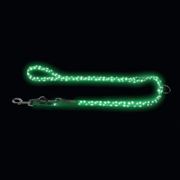 Nachtschwärmer werden die verstellbare Führleine CONVENIENCE REFLECT GLOW lieben! Das Must-Have für aktive Hundehalter leuchtet dank fluoreszierendem Material nicht nur in Dämmerung und Dunkelheit sondern reflektiert zusätzlich, sobald es von einer Lichtquelle angestrahlt wird. Das gibt dem Zweibeiner ein gutes und sicheres Gefühl der Sichtbarkeit und kommt dem Vierbeiner ebenfalls zugute. Dank der 3-fachen Verstellmöglichkeit lässt sich die reflektierende Leine mühelos jeder Situation anpassen. Für einen sicheren Spaziergang mit maximaler Bewegungsfreiheit ist die volle Länge von zwei Metern ideal, für das Training oder den Stadtbummel wird der Karabiner am besten in der Mitte eingehakt und wenn der Vierbeiner zeitweise an der kurzen Leine laufen soll, ist auch das mit nur einem Handgriff möglich. Hergestellt aus einem innovativen Kunststoffgemisch punktet die verstellbare Führleine mit geringem Gewicht und ist zudem sehr robust und griffig – vollkommen unabhängig davon, welche Witterungsbedingungen vor der Haustür auf Hund und Halter warten. Für sportlich Aktive und Outdoor-Enthusiasten ein Muss!
