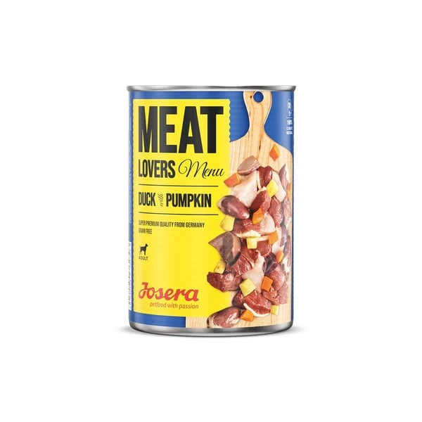 Manchmal ist mehr eben einfach mehr! Im Falle unseres getreide- und glutenfreien Menu Duck with Pumpkin für echte Meat Lovers auf vier Pfoten meinen wir natürlich: Mehr Fleisch. In der Dose für ausgewachsene Hunde warten saftige Ente, leckeres Huhn und schmackhaftes Rind darauf, von vierbeinigen Feinschmeckern verputzt zu werden.