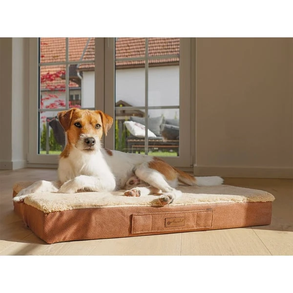 Das orthopädische Petlando Hundekissen Florenz Ortho besteht aus einem zwei Schichtensystem: Die erste Schicht aus Viskoschaum passt sich der Körperform deines Hundes perfekt an und sorgt effektiv für die Entlastung von Gelenken und Wirbelsäule. Die zweite Schicht aus PU-Schaum sorgt für Stabilisierung. Der Bezug aus Fellimitat speichert Wärme und sorgt für besonderen Komfort. Die Unterseite mit Anti-Rutsch-Beschichtung sorgt für sicheren Halt. Der Bezug ist sehr robust und lässt sich einfach zum Waschen bei 60 Grad abnehmen.