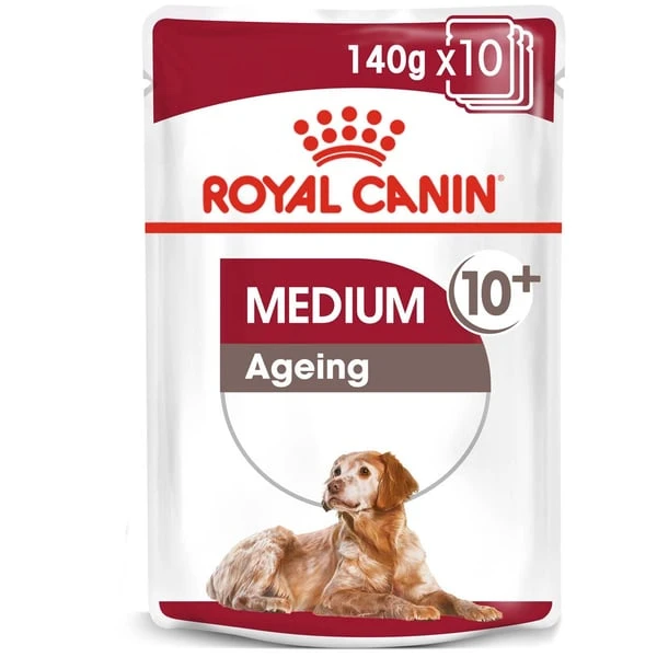 ROYAL CANIN Medium Ageing 10+ ist auch als Nassfutter in Soße erhältlich, um den individuellen Vorlieben verschiedener Hunde gerecht zu werden.