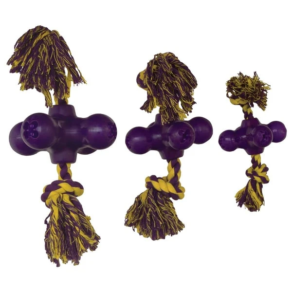 Der Treat Dispensing Jack setzt sich zusammen aus einem dicken, robusten Baumwollseil und einem gummierten, bissfesten Körper. Dadurch ist er ein ideales Wurf-, Kau- und Zerrspielzeug. Der Körper ist befüllbar mit den Starmark Interactive Treats oder auch anderen Leckerlis. Durch gezieltes Kauen auf dem Gummi kann sich der Hund die Leckereien erarbeiten. Zerren, schütteln, werfen, kauen! Der Treat Dispensing Jack ist für Hunde aller Größen geeignet.