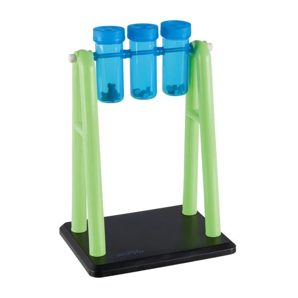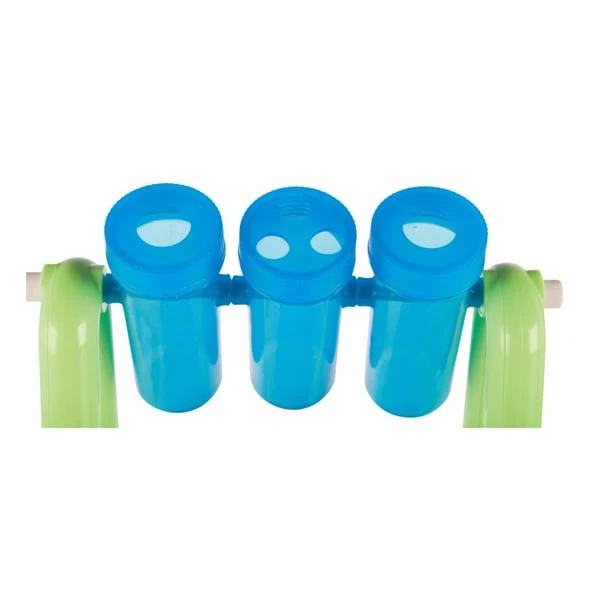 - besteht aus lackiertem Kunststoff und einem Sockel mit rutschfesten Gummifüßen. Am Ständer sind 3 Drehelemente mit je 2 Deckeln befestigt. … bietet durch unterschiedliche Deckelöffnungen 2 Schwierigkeitsgrade.