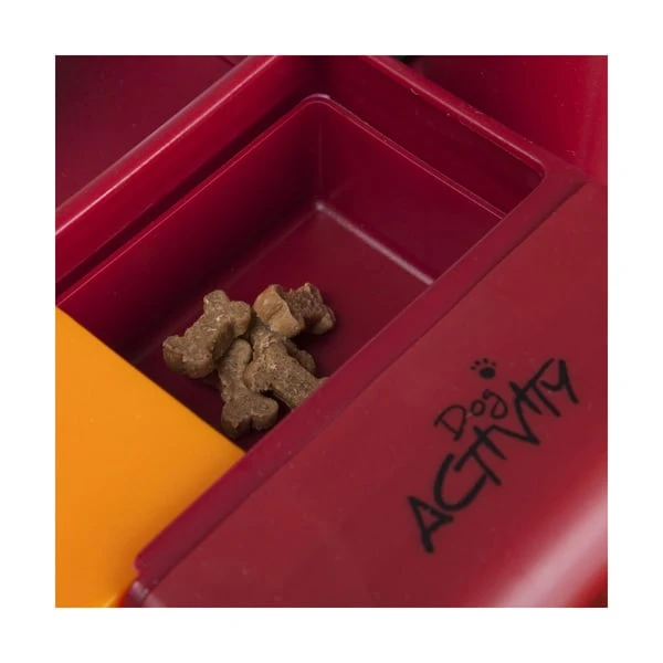 Dog Activity Strategiespiel Poker Box 2 ist ein Hunde-Intelligenzspielzeug mit 5 abwechslungsreichen Spielmodulen. Durch verschiedene Öffnungstechniken des Spielzeugs, gelangt der Hund an seine Belohnung
