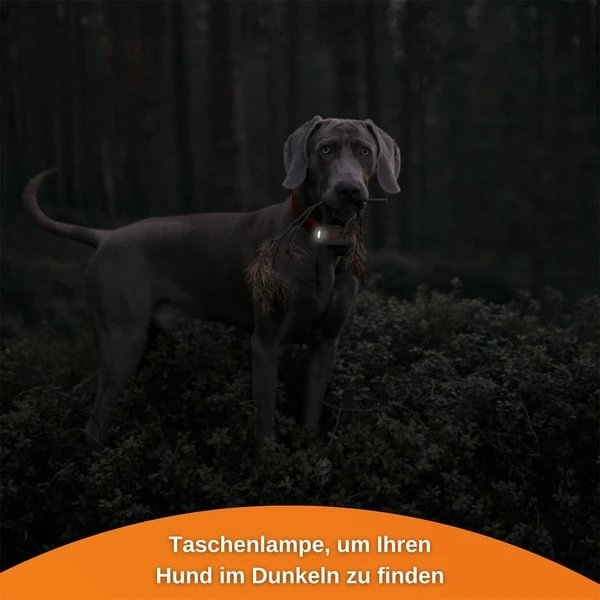 TASCHENLAMPE – Der GPS-Tracker für Hunde Weenect XS verfügt über eine eingebaute Taschenlampe, die im Dunkeln leuchten kann und deinen Hund so sichtbarer macht.