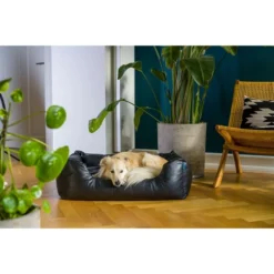 Damit dein Hund lange Freunde an dem Bett haben wird, ist es extra robust und strapazierfähig. Der pflegeleichte Polyester trocknet schnell und kann außerdem Wärme gut speichern, wodurch der Wohlfühlfaktor auch an nassen und kalten Tagen erhalten bleibt. Für alle, denen eine natürliche Beschaffenheit des Schlafplatzes wichtig ist, wurde hier auf eine Schadstoffprüfung geachtet. Aus Kunstleder gefertigt, ist das Bett nicht nur zweckmäßig, sondern macht auch optisch einen guten Eindruck.